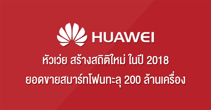Huawei สร้างสถิติใหม่ ทำยอดขายสมาร์ทโฟนทะลุ 200 ล้านเครื่องในปี 2018