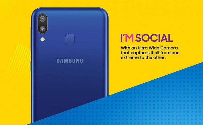 โดย Samsung Galaxy M30 ใช้หน้าจอขนาด 6.3 นิ้ว พร้อมด้วยแบตเตอรี่ขนาดความจุ 5,000 mAh ส่วน Samsung Galaxy M20 ใช้หน้าจอขนาด 6.13 นิ้ว และแบตเตอรี่ขนาดเท่ากันกับ Galaxy M30 ทั้งสองรุ่นใช้ชิปเซ็ต Exynos 7885 และกล้องหลังคู่ (Dual Cameras) มีเซ็นเซอร์สแกนลายนิ้วมือด้านหลังตัวเครื่อง, พอร์ต USB-C, แจ็คเสียบหูฟังขนาด 3.5 มิลลิเมตร พร้อมรองรับ Quick Charge ในขณะที่ Samsung Galaxy M10 จะเป็นรุ่นเล็กสุดที่มาพร้อมหน้าจอขนาด 6 นิ้ว และแบตเตอรี่ความจุ 3,400 mAh ใช้ชิปเซ็ต Exynos 7870 จับคู่กับความจำ RAM 3GB