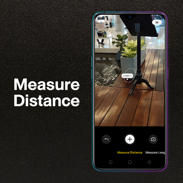 พบกับ ฟีเจอร์ใหม่ที่กำลังจะมา ซึ่งใช้หลักการทำงานของ TOF 3D Camera ของ OPPO R17 Pro นั่นคือฟีเจอร์ AR Ruler ซึ่งฟีเจอร์นี้มันคืออะไร? AR Ruler หรือ AR Measurement คือตัวช่วยในการวัดขนาดวัตถุ ผ่านสมาร์ทโฟน OPPO R17 Pro ประกอบด้วย 4 รูปแบบการวัด