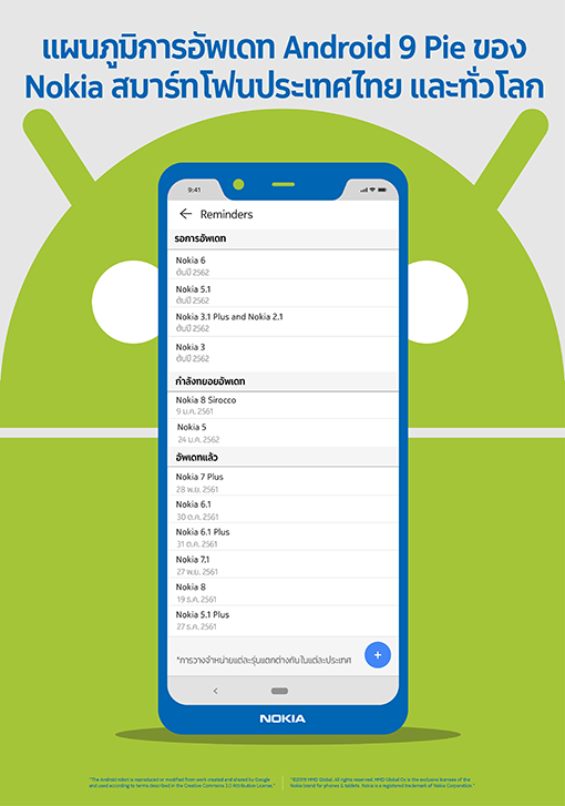 บริษัท เอชเอ็มดี โกลบอล เจ้าของลิขสิทธิ์การจัดจำหน่ายสมาร์ทโฟนแบรนด์โนเกียทั่วโลกแต่เพียงผู้เดียว ประกาศอัพเกรดระบบปฏิบัติการ Android 9 Pie รุ่นล่าสุดให้แก่ผู้ใช้งานสมาร์ทโฟน Nokia 5 แล้ววันนี้ การอัปเดตระบบปฎิบัติการเป็น Android 9 Pie ในครั้งนี้ของ Nokia 5 ถือเป็นการอัปเดตระบบปฏิบัติการตัวอักษรที่สองของระบบ OS ที่อัพเกรดจากระบบ Android N เป็น ระบบ Android O ในเดือนมกราคม 2561 ที่ผ่านมา