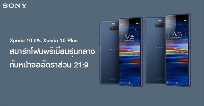 Sony Xperia 10 และ Sony Xperia 10 Plus สองสมาร์ทโฟนพรีเมี่ยมรุ่นกลาง กับหน้าจอ 21:9ปีนี้เป็นปีแรกที่ทางโซนี่ตั้งชื่อรุ่นมือถือที่เปิดตัวในงาน MWC 2019 เป็นตัวเลขทั้งหมด ไม่ว่าจะรุ่นใหญ่หรือรุ่นเล็ก ส่วนหนึ่งน่าจะมาจากการที่ได้ทีมบริหารฝั่งโมบายชุดใหม่หมดเลยนั้นเอง โดยล่าสดก็เปิดตัว Sony Xperia 10 และ Sony Xperia 10 Plus สองสมาร์ทโฟนพรีเมียมระดับกลาง กับจุดเด่นหน้าจอ 21:9