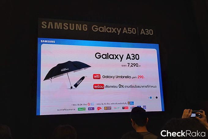 และสำหรับ SAMSUNG Galaxy A30 รับฟรี ร่มพับ (Galaxy Umbrella) และรับสิทธิ์ผ่อน 0% นาน 24 เดือน หรือเลือกผ่อน 0% นาน 10 เดือน พร้อมรับเครดิตเงินคืน 150 บาท