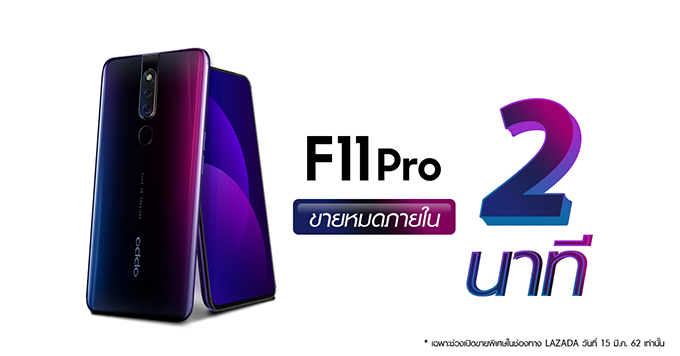 OPPO F11 Pro ขายหมดภายใน 2 นาที ในรอบเปิดขายพิเศษทาง Lazada!!