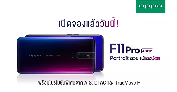 สำหรับใครที่พลาดรอบขายพิเศษก็ไม่ต้องเสียใจไป เพราะยังมีการ Pre-order รอบปกติ ที่สามารถจอง OPPO F11 Pro ได้ในราคา 10,990 บาท พร้อมของแถมสุดพิเศษเป็น OPPO VIP Card และ OPPO Smart bag มูลค่ากว่า 6,590 บาท (ของแถมมีจำนวนจำกัด) เริ่มจองได้ตั้งแต่ 16 มีนาคม 2562 ที่ OPPO Brand Shop และช่องทางจำหน่ายอื่น ๆ ทั่วประเทศ สามารถดูรายละเอียดเพิ่มเติมได้ตามลิ้งก์ด้านล่างนี้