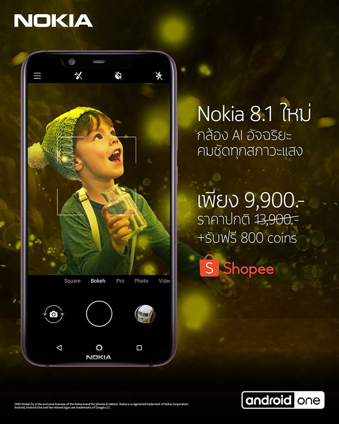 Nokia 8.1 สมาร์ทโฟน Android One ชูจุดเด่นด้วยกล้อง AI อัจฉริยะ คมชัดในทุกสภาวะแสง พร้อมเปิดให้จองผ่านทาง Shopee ในราคาพิเศษเพียง 9,900 บาท จากราคาปกติ 13,900 บาท พร้อมรับฟรี 800 Shopee Coins สำหรับลูกค้า 500 ท่านแรก