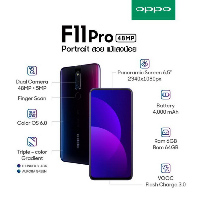 ซึ่งเหตุผลที่ทำให้ OPPO F11 Pro ได้รับกระแสตอบรับที่ดีขนาดนี้ก็เพราะ OPPO F11 Pro มีความผสมผสานเทคโนโลยีและดีไซน์มาพร้อม ไม่ว่าจะเป็นเทคโนโลยีชาร์จไว VOOC Flash Charge 3.0 กล้องหลังคู่ประสิทธิภาพสูง 48+5MP ถ่าย Portrait สวย แม้แสงน้อย ฝาหลังแบบไล่เฉดสี และ หน้าจอแบบ Panoramic Screen ในราคาสุดคุ้ม 10,990 บาท จึงไม่แปลกใจเลยที่ OPPO F11 Pro จะได้รับกระแสตอบรับที่ดีมาอย่างต่อเนื่อง ถือได้ว่า OPPO เป็นแบรนด์ที่น่าจับตามองในช่วงนี้เลยทีเดียว เนื่องจาก OPPO มีการพัฒนานวัตกรรมและผลิตภัณฑ์ใหม่ๆอย่างต่อเนื่อง และยังคงวางแผนเพื่อมอบผลิตภัณฑ์และนวัตกรรมล้ำสมัยมาครองใจผู้บริโภคในอนาคตอย่างแน่นอน