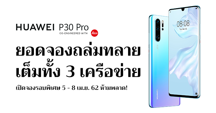Huawei P30 Pro ยอดจองถล่มทลาย เต็มทั้ง 3 เครือข่าย พร้อมเปิดจองรอบพิเศษ 5 - 8 เม.ย. 62 ห้ามพลาด!
