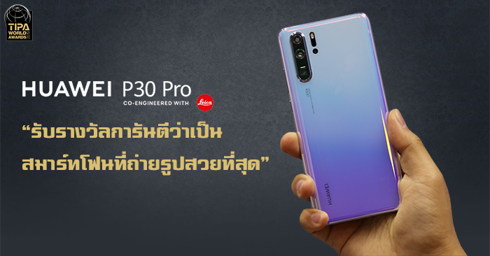 รางวัล TIPA World Award มาจากการเสนอชื่อของตัวแทนช่างภาพสื่อมวลชนและสำนักพิมพ์ต่างๆ ทั่วโลกที่ได้ร่วมทดสอบและเปรียบเทียบสมาร์ทโฟนหลากหลายรุ่นก่อนจะกล่าวยกย่องเป็นเสียงเดียวกันว่า Huawei P30 Pro เป็นสมาร์ทโฟนที่โดดเด่นกว่าสมาร์ทโฟนในระดับเดียวกันของคู่แข่ง ระบบกล้องหลัง 4 ตัวที่ร่วมพัฒนาโดย Leica ประกอบด้วยกล้องหลักความละเอียด 40 ล้านพิกเซลที่ใช้เซนเซอร์ Huawei SuperSpectrum พร้อมด้วยกล้องอัลตราไวลด์ความละเอียด 20 ล้านพิกเซล ระบบเลนส์ซูมแบบ SuperZoom ที่หัวเว่ยพัฒนาขึ้นเองโดยเฉพาะและมีคุณสมบัติป้องกันภาพสั่นไหวได้ดี เพื่อความคมชัดของภาพที่ถ่ายแบบซูมอย่างที่สมาร์ทโฟนไม่เคยทำได้มาก่อน และกล้องตัวที่ 4 หรือที่เรียกอีกชื่อว่า Time of Flight (ToF) สำหรับการวัดระยะวัตถุด้วยแสง เพื่อการวัดระยะชัดลึกและการถ่ายภาพแบบโบเก้ที่ดีกว่าที่เคย กล้องหลังทั้ง 4 สามารถทำงานร่วมกันเพื่อสร้างสรรค์ภาพถ่ายที่เปี่ยมไปด้วยรายละเอียดและคมชัดในทุกสภาพแสง