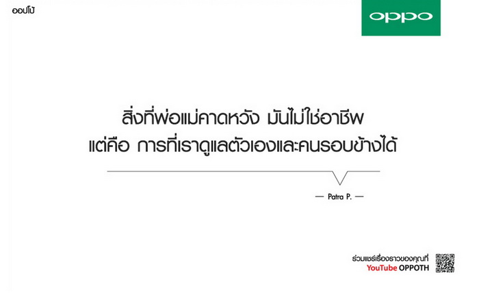 "OPPO สนับสนุนให้ทุกคนใช้ช่วงเวลาสงกรานต์นี้ เปิดใจ และ ปรับความเข้าใจกับคนที่คุณรัก และพร้อมเป็นกำลังใจให้ทุกคน ทุกอาชีพเสมอ" พบเรื่องราวของความฝันและความหวัง ได้ที่นี่เลย