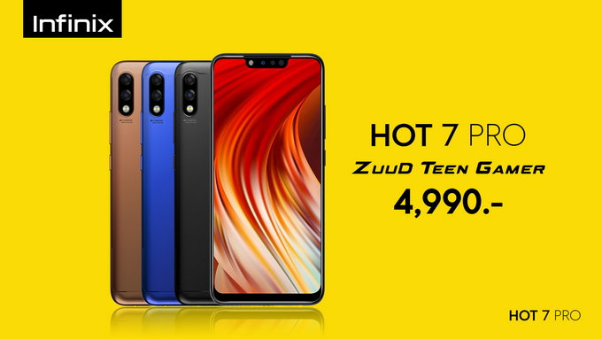 Infinix Hot 7 Pro สมาร์ทโฟนรุ่นใหม่ล่าสุดจากแบรนด์ Infinix ซึ่งมาพร้อมสโลแกนแนวๆ ZuuD Teen Gamer นำเสนอประสบการณ์ใหม่สำหรับคอเกม ที่ต้องการสมาร์ทโฟนสเปคเยี่ยม ในราคาเบาๆ โดยรุ่นนี้มีจุดเด่นที่ RAM 6GB สูงที่สุดในตลาดสำหรับสมาร์ทโฟนระดับราคานี้