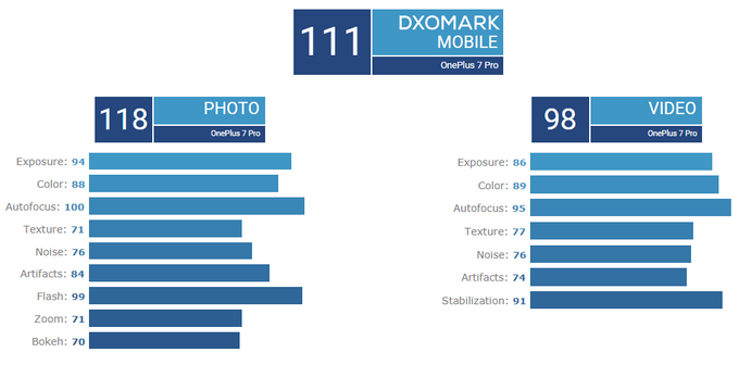 ล่าสุดคะแนนทดสอบกล้องจาก DXOMARK ได้ออกมาแล้วนะครับสำหรับ OnePlus 7 Pro โดยคะแนนกล้องหลังอยู่ที่ 111 คะแนน (คะแนนภาพนิ่ง 118 คะแนน และวีดีโอ 98 คะแนน) เท่ากับว่าเป็นสมาร์ทโฟนที่กล้องดีเป็นอันดับ 2 ของโลกเลยครับ เป็นรองเพียง Huawei P30 Pro และ Samsung Galaxy S10+ 5G ที่ได้ 112 คะแนนเท่ากัน ต่างกันเพียงคะแนนเดียวเท่านั้น และในส่วนของกล้องหน้าได้ไป 86 คะแนน
