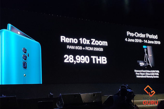 โดยเปิดให้จองตั้งแต่วันนี้จนถึงวันที่ 13 มิถุนายน 2562 ที่ เอไอเอสช็อป ร้านเทเลวิซทุกสาขา นอกจากข้อเสนอและโปรโมชั่นสุดคุ้มจากทาง AIS แล้วของแถม Pre Order ก็คุ้มสุดคุ้ม ไม่ว่าจะเป็นขาตั้งกล้อง Tripod สุดพรีเมี่ยม Diamond Card บริการพิเศษสำหรับผู้ใช้ Reno 10x Zoom ที่สามารถใช้รับประกันระหว่างประเทศ พร้อมทั้งประกันหน้าจอแตก1 ปี พร้อมสิทธิ Fast Lane สำหรับซ่อมและอัพเกรดได้ที่ศูนย์บริการ OPPO ทั้งในและต่างประเทศหรือช่องทางการจำหน่ายอย่างเป็นทางการของ OPPO เรียกได้ว่าสะดวกสบายแน่นอน บอกเลยว่าของแถมมีจำนวนจำกัด แถมโปรโมชั่นสุดคุ้มแบบนี้ห้ามพลาดเด็ดขาด!!