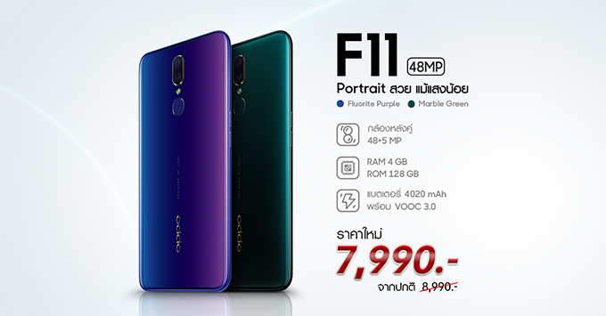 OPPO F11 ได้ปรับราคาจากเดิม 8,990 บาท เหลือเพียง 7,990 บาทเท่านั้น โดยเริ่มตั้
