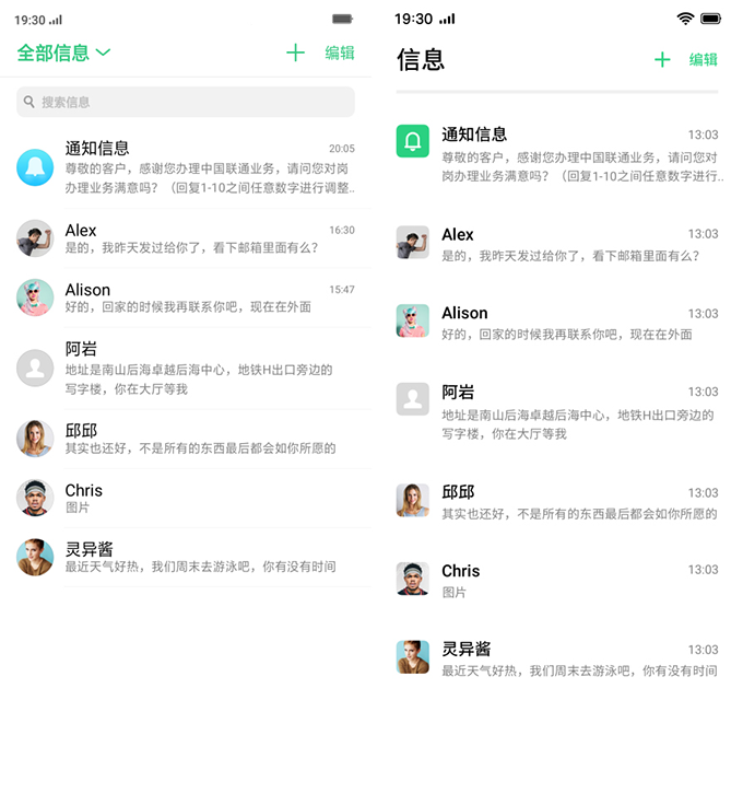 ColorOS 6 ใช้คอนเซ็ปต์การดีไซน์ที่ไร้ขอบเขต เพื่อจัดระเบียบข้อมูลจำนวนมากของผู้ใช้ โดย OPPO ได้รวบรวมแสง สีสันที่ดูสบายตา และพื้นหลังสีขาว เพื่อสร้างอินเทอร์เฟซที่เรียบง่ายและสง่างาม ซึ่งจะแตกต่างจาก ColorOS 6 ในอินเทอร์เฟซดั้งเดิมของ Google