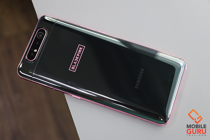 - ตัวเครื่อง Galaxy A80 รุ่นพิเศษ Blackpink Edition เครื่องสีดำ-ชมพู มีโลโก้ Blackpink อยู่ด้านหลังเครื่อง รวมถึงธีม อนิเมชั่นเปิดเครื่องสุดพิเศษ และสติ๊กเกอร์สุดน่ารักของสาวๆ Blackpink ลายพิเศษ ที่มีเฉพาะในเครื่องรุ่นนี้เท่านั้น