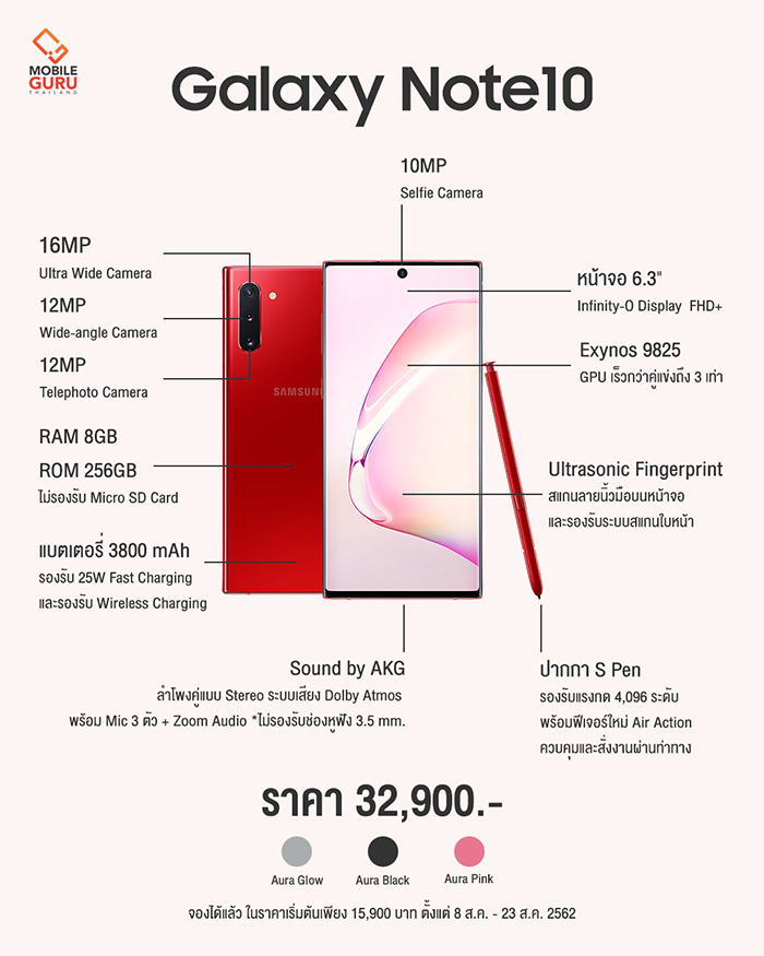 สำหรับราคาวางจำหน่าย Samsung Galaxy Note 10 Series ในประเทศไทย มีดังนี้