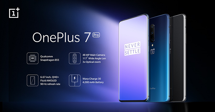 OnePlus 7 Pro สมาร์ทโฟนสุดพรีเมี่ยมที่มาพร้อมกับหน้าจอ Fluid AMOLED ขนาดหน้าจอใหญ่ 6.67 นิ้ว ความคมชัดระดับ HDR10+ และรีเฟรชเรทสูงถึง 90Hz เต็มเปี่ยมกับประสิทธิภาพกับการเล่นเกมบนสมาร์ทโฟนของคุณได้อย่างดีเยี่ยม โดยใช้ชิปเซ็ทประมวลผล Qualcomm Snapdragon 855 กับหน่วยความจำภายใน USF 3.0 ที่เร็วแรงและลื่นไหลกว่าสมาร์ทโฟนทุกรุ่นที่เคยมีมา พร้อมระบบชาร์จเร็วอย่าง Warp Charge 30W และยังมาพร้อมประสิทธิภาพของกล้องหลังถึง 3 ตัว Triple Camera ความละเอียดชัดถึง 48 ล้านพิกเซล ที่จะช่วยเก็บภาพถ่ายทุกช่วงเวลาได้เป็นอย่างดี
