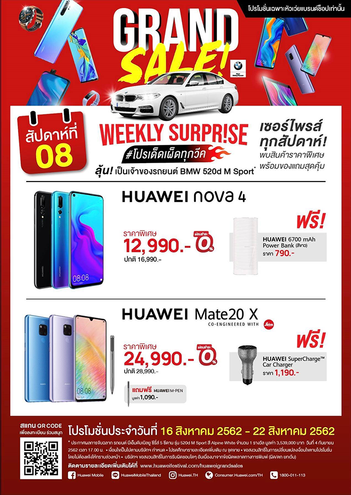 โค้งสุดท้าย HUAWEI Grand Sale 2019 ส่งมือถือ nova4 และ Mate20 X ร่วมโปรเด็ดเผ็ดทุกวีค สัปดาห์ที่ 8