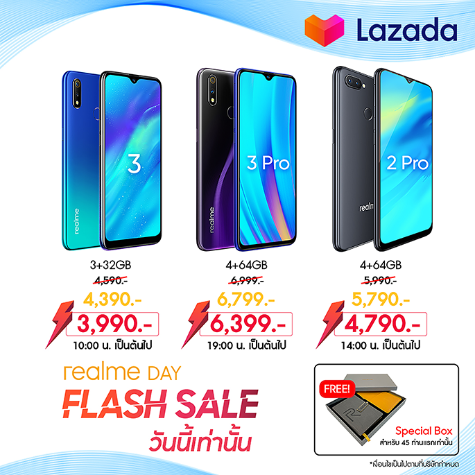 เรียลมี ร่วมมือ Lazada จัด Flash Sale ลดราคาแรงทุกรุ่น พร้อมเพิ่มส่วนลด realme 3 Pro อีก 1,000 บาท