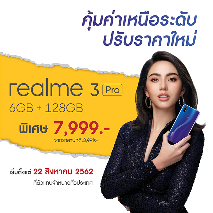 realme 3 ให้คุณคุ้มค่าไปกับคุณภาพและราคาที่โดนใจกว่าเดิม ในวันที่ 22 สิงหาคม 2562 โดยลดราคาทั้งหมด 3 รุ่น ดังนี้