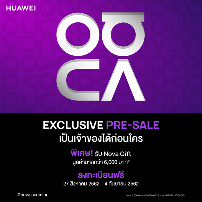 www.huaweinovath.com *หมายเหตุ* สงวนสิทธิ์การลงทะเบียนจอง 1 เลขบัตรประจำตัวประชาชน ต่อ 1 สิทธิ์ ตรวจสอบรายละเอียดเพิ่มเติม ได้ที่ www.huaweinovath.com หรือ www.facebook.com/HuaweimobileTH