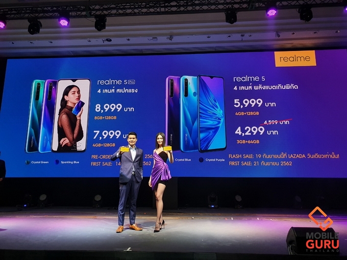 - realme 5 Pro ความจุ 8/128 ราคา 8,999 บาท 4/128 ราคา 7,999 บาท เปิดจอง 3-13 ก.ย. แถม VIP Card และหูฟัง วางจำหน่าย 14 ก.ย. เป็นต้นไป