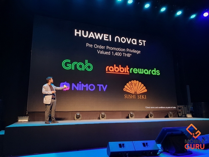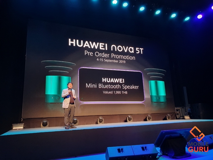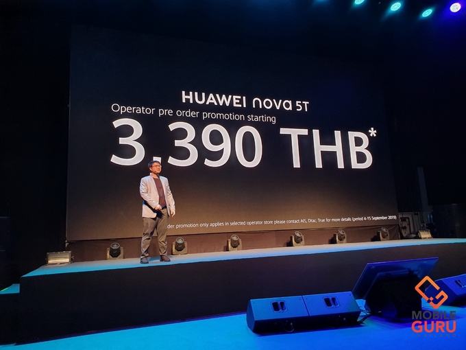 HUAWEI nova 5T จะวางจำหน่าย 3 สี ได้แก่ Crush Blue, Black และสีสุดพิเศษ ลิมิเต็ด เอดิชั่น Midsummer Purple ในราคาสุดเร้าใจเพียง 10,990 บาท โดยจะวางจำหน่ายอย่างเป็นทางการตั้งแต่วันที่ 21 กันยายนนี้เป็นต้นไป โดยลูกค้าทั่วไปที่ Pre-order ในระหว่างวันที่ 4-15 กันยายน จะได้รับของสมนาคุณพิเศษ HUAWEI Mini Speaker มูลค่า 1,990 บาท ส่วนลูกค้าที่ Pre-order ผ่านผู้ให้บริการเครือข่าย AIS, dtac, True รับสิทธิส่วนลดสูงสุด 7,600 บาท โดยจะได้รับส่วนลดดังนี้