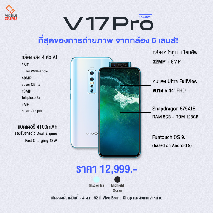 Vivo V17 Pro ฉีกทุกกฎในทุกช็อต กับกล้อง 6 เลนส์ ราคาน่าจัด 12,999 บาท จองวันนี้ - 4 ต.ค. 62