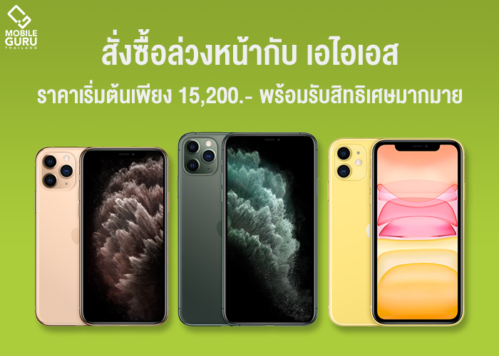 นอกจากนี้ เอไอเอส ยังเปิดให้สั่งซื้อล่วงหน้า iPhone 11 บนเครือข่ายเอไอเอส ที่เร็วสุด แรงสุด ตั้งแต่วันที่ 11 ต.ค. 62 - 14 ต.ค. 62 โดยจ่ายมัดจำ เพียงแค่ 2,000 บาท พร้อมรับเครื่องได้ในวันที่ 18 ต.ค. 62 - 20 ต.ค. 62 กับข้อเสนอที่ดีที่สุด