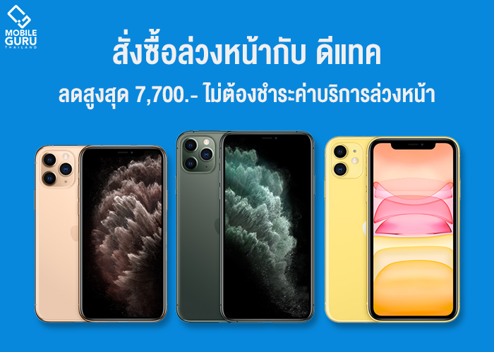 ดีแทค เปิดสั่งจอง iPhone 11 Pro, iPhone 11 Pro Max และ iPhone 11 ได้ตั้งแต่วันที่ 11 ต.ค. 2562 เวลา 00:01 น. - 15 ต.ค. 2562 เวลา 12:00 น. พร้อมค่ามัดจำ 2,000 บาท และสามารถเลือกผ่อน 0% ได้นานสูงสุด 36 เดือน ผ่านบัตรเครดิตที่ร่วมรายการ รับเครดิตเงินคืนสูงสุด 5% (ย้ายค่ายออนไลน์ พร้อมสั่งซื้อและชำระเงิน รับส่วนลดเพิ่ม 2,000.-)