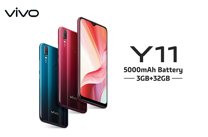 Vivo Y11 มีให้เลือก 1 รุ่นความจำ คือ RAM 3 GB + ROM 32 GB และจะมีให้เลือก 2 สี คือ สีฟ้า Mineral Blue และสีแดง Agate Red วางจำหน่ายในราคา 3,999 บาท