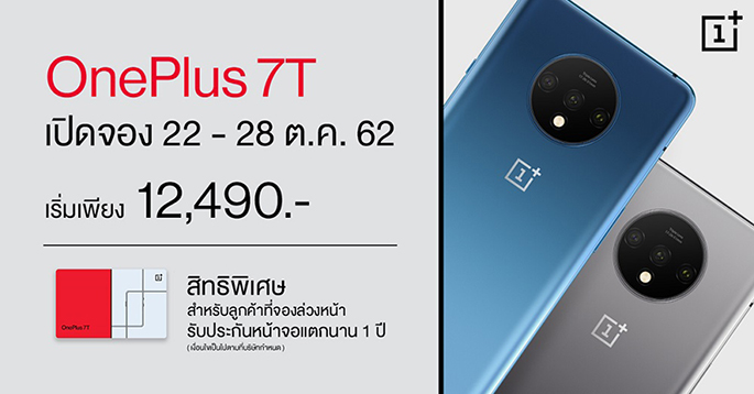 - เมื่อสั่งจอง OnePlus 7T เพิ่มเงินเพียงแค่ 77 บาท รับฟรี! สมาร์ทวอทช์ มูลค่า 990 บาท