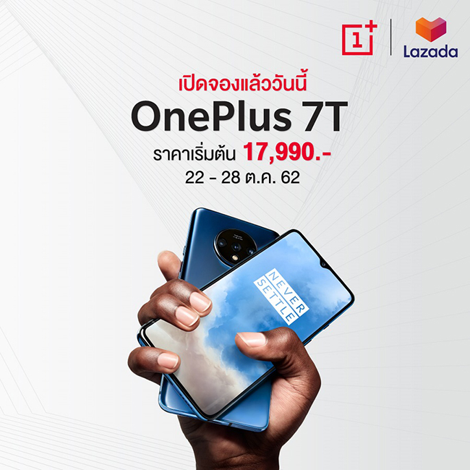 พร้อมกันนี้ ยังสามารถสั่งจอง OnePlus 7T ผ่านช่องทางออนไลน์ที่ JD Central และ Lazada พร้อมโปรโมชันตามแต่ละช่องทาง