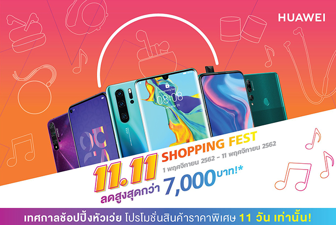 HUAWEI Shopping Fest โปรโมชั่นเดือนที่สอง แบบจัดเต็ม 11 วัน เริ่มวันนึ้ - 11 พฤศจิกายนนี้ พบกับสมาร์ทโฟนเรือธง แท็บเล็ต และแกดเจ็ตรุ่นใหม่ที่หัวเว่ยจัดขบวนมาร่วมโปรโมชั่นกันแบบจุใจ