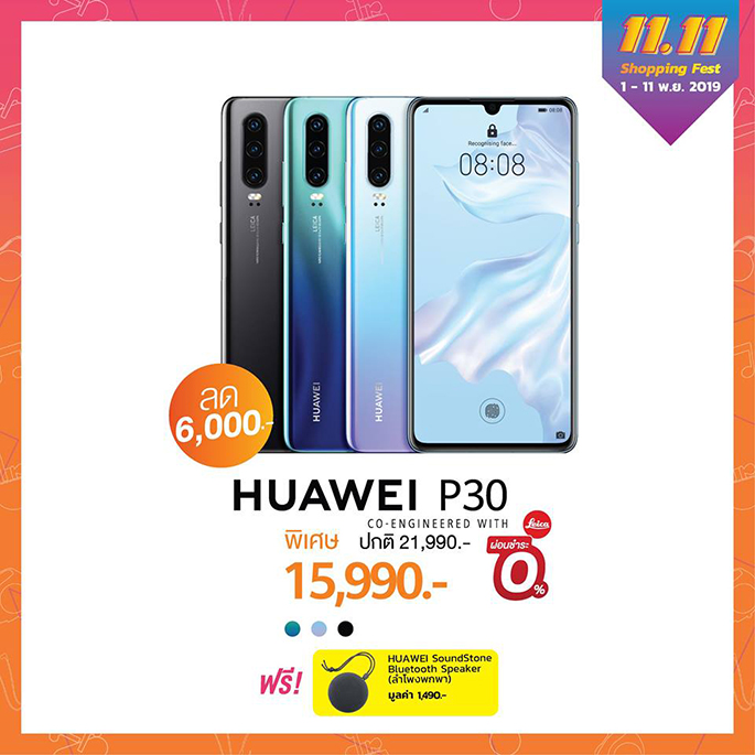 - HUAWEI P30 Pro สมาร์ทโฟนรุ่นเรือธงยอดนิยมที่ฉีกทุกกฏเกณฑ์ของการถ่ายภาพ ด้วยฟีเจอร์ชั้นเลิศจากกล้อง Leica Quad camera system กับราคาพิเศษ 24,990 เท่านั้น พร้อมของสมนาคุณ รับทันที HUAWEI SoundStone Bluetooth Speaker มูลค่า 1,490 บาท
