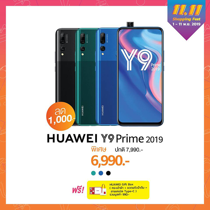 - HUAWEI Y9 Prime 2019 สมาร์ทโฟนกล้องหน้าป๊อปอัพ 16 ล้านพิกเซล จอใหญ่ไร้ติ่งไร้ขอบ ด้วย HUAWEI Ultra FullView Display ที่จะสร้างความเพลิดเพลินด้วยความบันเทิงแบบเต็มรูปแบบ จัดมาพร้อมราคาเบาๆ เพียง 6,990 เท่านั้น! และรับของสมนาคุณพิเศษ HUAWEI Gift Box มูลค่า 990 บาท ฟรี!
