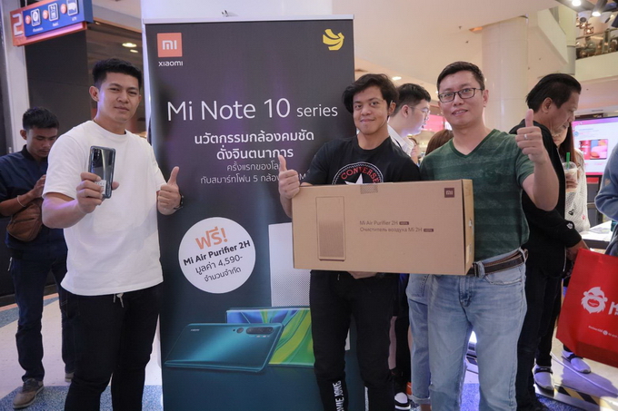 นายบุญญฤทธิ์ คงจรูญ เป็นลูกค้ารายแรกที่มารอซื้อสมาร์ทโฟน Mi Note 10 ที่ร้าน Banana สาขาเซ็นทรัลพระรามสอง หนึ่งในร้านค้าตัวแทนจำหน่ายที่ได้รับอนุญาตจากเสียวหมี่อย่างเป็นทางการ หลังจากพลาดโอกาสในการรับเป็นลูกค้ากลุ่มแรกทางออนไลน์ที่ซื้อจะได้รับเครื่องฟอกอากาศ Mi Air Purifier 2H หลังจากซื้อสมาร์ทโฟน Mi Note 10 ในการนี้ นายโรซัน หลัว ผู้จัดการประจำประเทศไทย เสียวหมี่ เทคโนโลยี เป็นผู้มอบเครื่องฟอกอากาศ Mi Air Purifier 2H ให้แก่ลูกค้ากลุ่มแรกด้วยตัวเอง
