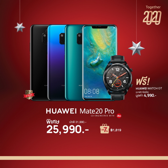 พบกับกองทัพสมาร์ทโฟนและแท็บเล็ต 7 รุ่นฮิต และรับส่วนลดเพิ่มทันทีอีก 7% พร้อมร่วมลุ้นรางวัลใหญ่ในแคมเปญ Together 2020 ได้แล้ว ตั้งแต่วันนี้ - 12 มกราคม 2020 ณ Huawei Experience Store และร้านค้าที่ร่วมรายการ