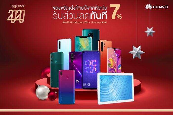 หัวเว่ย มอบของขวัญส่งท้ายปี รับส่วนลดเพิ่มทันที 7% เมื่อซื้อสมาร์ทโฟนและแท็บเล็ต วันนี้ - 12 ม.ค. 63