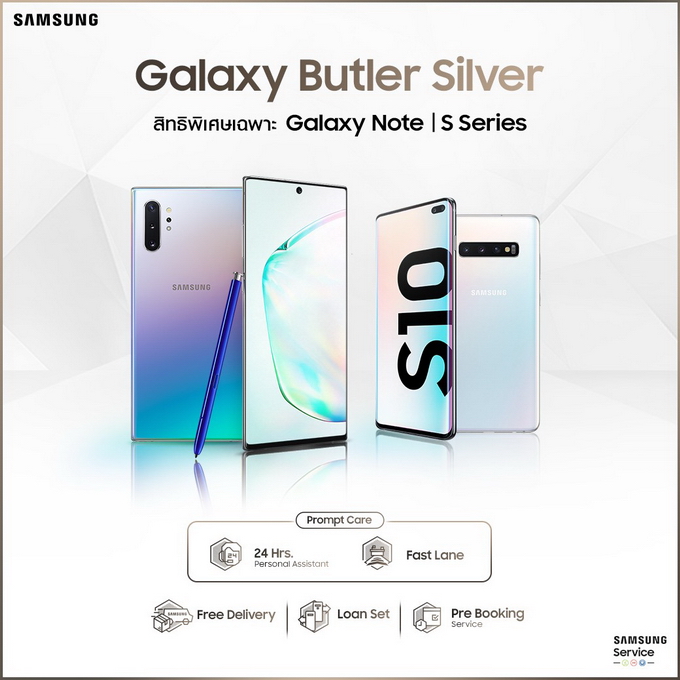 - บริการช่วยเหลือพิเศษระดับพรีเมี่ยม กาแลคซี่ บัทเลอร์ (Galaxy Butler) ซึ่งในปัจจุบันได้ขยายครอบคลุมสำหรับสมาร์ทโฟนตระกูลกาแลคซี่ทุกรุ่นจากเดิมที่ให้สิทธิแค่เฉพาะรุ่นแฟลกชิป โดยแบ่งเป็นบัทเลอร์ บลู (Butler Blue) สำหรับกาแลคซี่ เอ ซีรี่ส์, บัทเลอร์ ซิลเวอร์ (Butler Silver) สำหรับ กาแลคซี่ โน้ต และกาแลคซี่ เอส และบัทเลอร์ โกลด์ (Butler Gold) สำหรับกาแลคซี่ โฟลด์ ที่ได้รวบรวมความพิเศษที่มากกว่า อาทิ บริการเครื่องสำรองใช้ระหว่างซ่อม บริการรับ-ส่งเครื่องซ่อม และบริการห้องรับรองพิเศษเป็นต้น โดยสิทธิ์ที่ได้จะแตกต่างกันไปตามแต่ละรุ่น