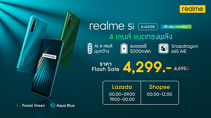 realme 5i สมาร์ทโฟน "4 เลนส์ แบตทรงพลัง" สมาชิกใหม่ในตระกูล