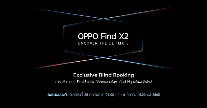OPPO Find X2 Series สมาร์ทโฟนที่มาพร้อมกับนวัตกรรมที่เหนือกว่าก่อนใครจาก ออปโป้ พร้อมเปิดให้จองได้แล้ว ตั้งแต่วันที่ 25 ก.พ. (9.00 น.) - 6 มี.ค. (11.00 น.) 2563 พิเศษ! รับฟรีของสมนาคุณ มูลค่ารวมกว่า 25,729 บาท