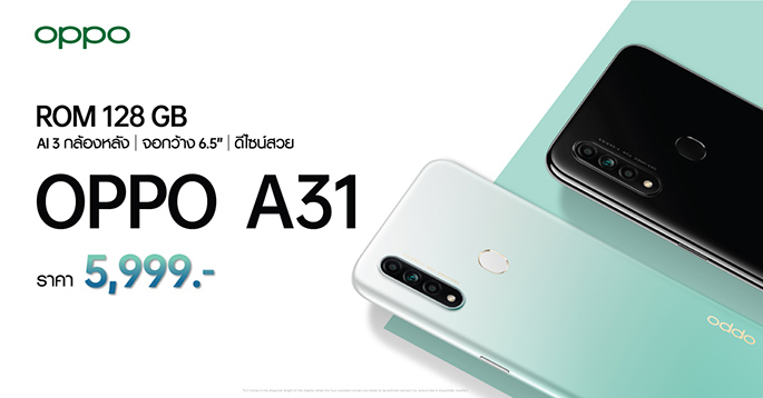 OPPO A31 สมาร์ทโฟนสเปคคุ้มค่า ในราคาโดนใจ เป็นเจ้าของแล้ววันนี้ ในราคาเพียง 5,999 บาท!