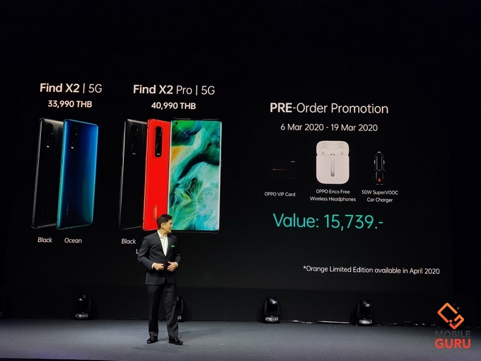 OPPO X2 Pro จะวางจำหน่ายสีดำ Black (Ceramic) ในราคา 40,990 บาท (สำหรับสีส้ม (Vegan Leather) จะวางจำหน่ายภายในวันที่ 20 เมษายน 2563) และ OPPO X2 มีวางจำหน่าย 2 สี ได้แก่ สีดำ Black (Ceramic) และสีน้ำเงิน Ocean (Glass) ราคา 33,990 บาท สำหรับใครที่สนใจ สามารถจองล่วงหน้า ได้ตั้งแต่วันที่ 6 - 19 มี.ค. 2563 ที่ ออปโป้ แบรนด์ช็อป พร้อมรับของแถมพิเศษ มูลค่ารวม 15,739 บาท หรือเลือกรับส่วนลดสูงสุด 15,000 บาท เมื่อสั่งจองล่วงหน้ากับ เอไอเอส, ทรูมูฟ เอช และดีแทค และในงานนี้ยังเปิดตัวหูฟัง OPPO Enco Free มีให้เลือก 2 สีได้แก่ สีดำและสีขาว ราคา 3,999 บาท