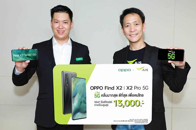 - นอกจากนี้ มอบสิทธิพิเศษสุดว้าว รับสิทธิ์ชมคอนเทนต์ระดับโลก ดู NETFLIX ไม่อั้น นาน 3 เดือน และรับแพ็กเกจ PLAY FAMILY จาก AIS PLAY นาน 6 เดือน ดูฟรี ไม่คิดค่าเน็ต พร้อมรับฟรี! OPPO Enco Free True Wireless Headphones, ที่ชาร์จในรถ 50W SuperVOOC Car Charger และบัตร VIP Card รวมมูลค่าทั้งสิ้น 15,739 บาท เมื่อซื้อ OPPO Find X2 5G และ OPPO Find X2 Pro 5G พร้อมสมัครแพ็กเกจรายเดือน 4G Hot Deal MAXX 649 บาทขึ้นไป และชำระค่าบริการล่วงหน้า หรือลูกค้าเอไอเอส เซเรเนด ที่จองเครื่องในโครงการ Best Buy และสมัครแพ็กเกจ 1,099 บาทขึ้นไป