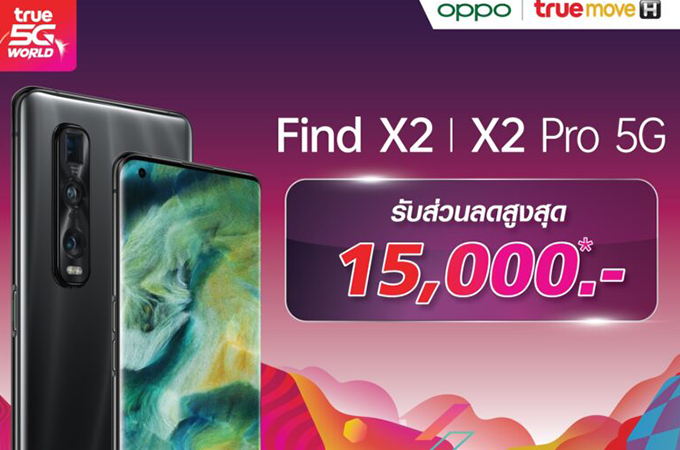 ข้อเสนอสุดพิเศษจากทรูมูฟ เอช ที่มอบส่วนลดสูงสุดถึง 15,000 บาท เมื่อจอง OPPO Find X2 5G และส่วนลดสูงสุดถึง 9,000 บาท เมื่อจอง OPPO Find X2 Pro 5G พร้อมสิทธิพิเศษมากมาย อาทิ