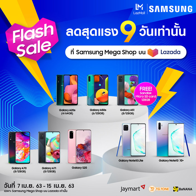 Samsung ร่วมกับ Lazada Flash Sale จัดโปรแรงสมาร์ทโฟน ลดหนักสุด วันนี้ - 15 เมษายน 63 เท่านั้น!