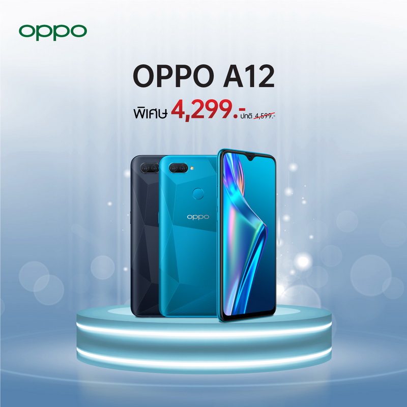 - OPPO A12 เหลือเพียง 4,299 บาท จาก 4,599 บาท
