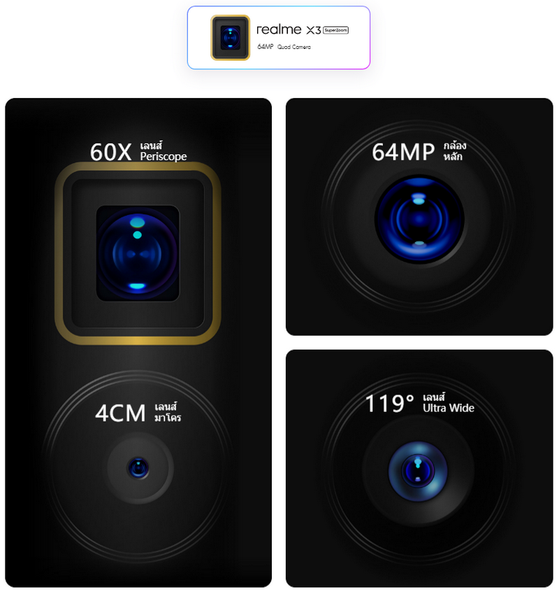 realme X3 SuperZoom สมาร์ทโฟน Snapdragon 855+ หน้าจอ 120Hz กล้องซูม 60x ราคา 19,990 บาท