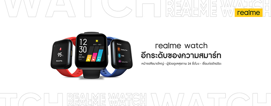 realme Watch นาฬิกาผู้ช่วยดูแลสุขภาพ 24 ชั่วโมง เพิ่มระดับการดูแลสุขภาพให้สมาร์ทยิ่งขึ้น และ realme Buds Air Neo หูฟังไร้สายคุณภาพเสียงระดับสูงด้วยไดร์เวอร์ขนาดใหญ่ 13 มิลลิเมตร อีกด้วย